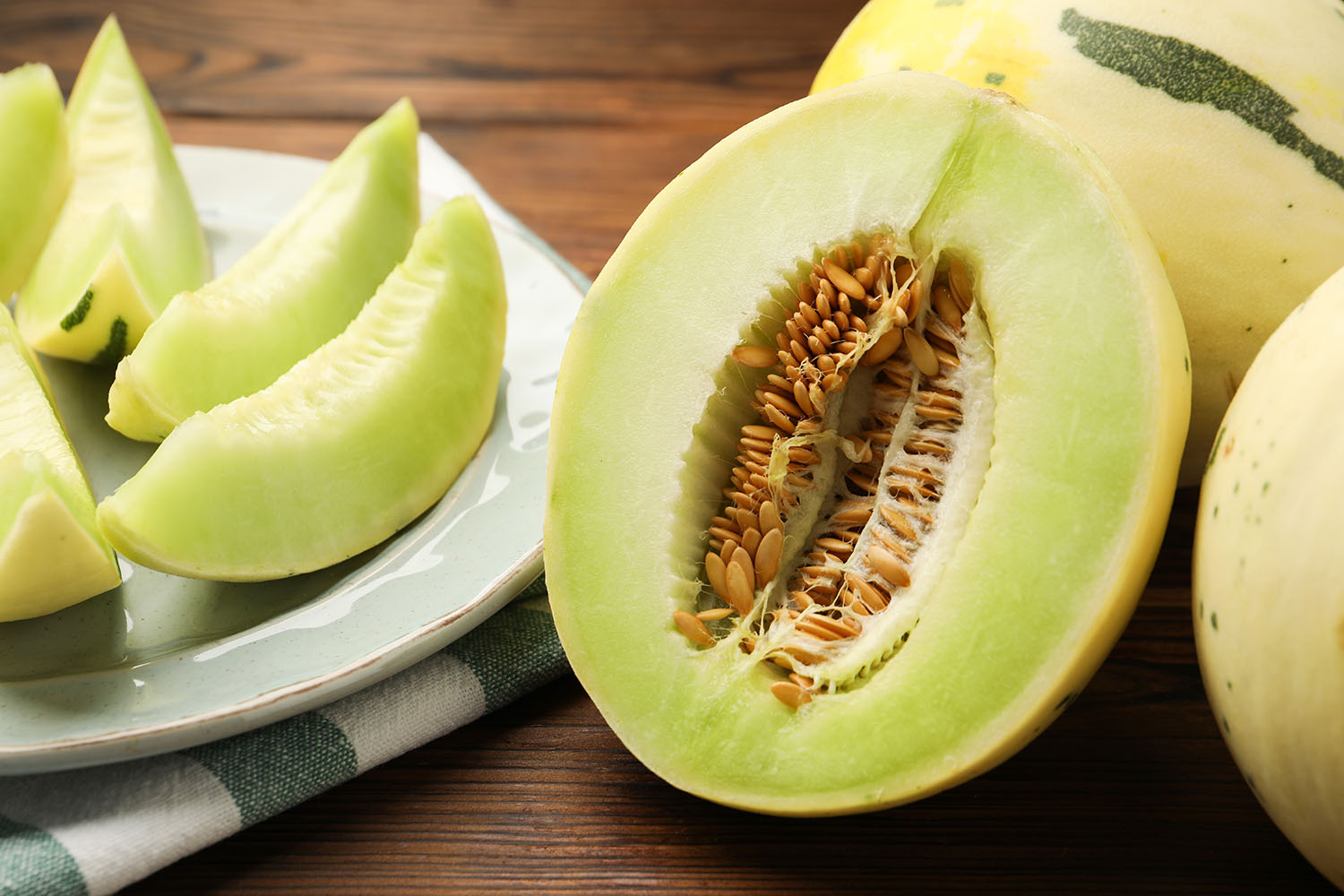 There’s no way to properly enjoy 🍉 without getting messy. (Using a fork or a toothpick? What are you? British?). If you want an unforgettable time with this beach bombshell, ready yourself for all the seed-spitting, sugar-dripping, and tongue-staining glory that comes with it! There’s a reason this melon is an icon of summer; its bright and vivid colours are an invitation to sink your teeth into its sweet and satisfying flesh. It’s the kind of fruit that will make you forget what you were saying. And it’s also a star at festivals – hollow it out, pour some rum or vodka and use it to make a boozy melon! Either way, this melon is going to leave you with a wide and wet grin! 🍉