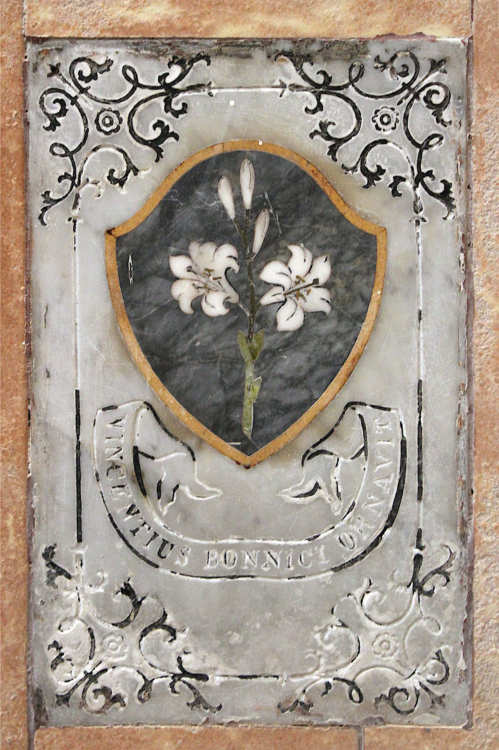 In St Philip’s Church (Senglea), Vincent Bonnici is commemorated through a marble plaque for his effort in decorating the place of worship (Photo courtesy of the CIM Team)